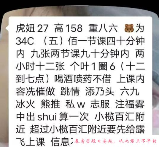 这是通过朋友介绍的,平时上午在沙溪制衣厂炒更,下午方便,住公寓。年龄30多,个子比较小,广西妹子,皮